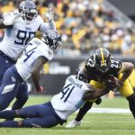 On the Titans’ final possession, their fate wasn’t sealed by another turnover but a fourth-down stop courtesy of Haden, who had missed the previous four games with a foot injury. The Titans already had converted a fourth-and-1 at the Steelers 32 and faced a fourth-and-6 at the 16 with 46 seconds left. Nick Westbrook-Ikhine caught a Tannehill pass short of the sticks and tried to fight for the first down only to be denied.