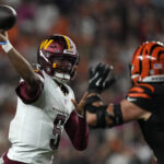 Daniels has only been sacked 17 times, just once more than Steelers backup Justin Fields was in his six starts. Five of those sacks came in the Commanders’ two losses, at Tampa Bay in the opener and at Baltimore in Week 6, and five others in Washington’s first game against the New York Giants, a 21-18 win.