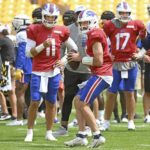 • NFL officials were on hand, as is standard for joint practices. They threw flags even during individual, one-on-one style drills. At one point during a team drill, everyone seemed to think Steelers outside linebacker Nick Herbig jumped offside … but the official called a false start on a Buffalo lineman.