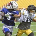 • As much as special teams was an emphasis — and indeed the impetus for the entire joint practice — it’s difficult to glean much in regards to observations during punt and kickoff work. It is becoming notable that Patterson — a player the Steelers signed this spring who happens to hold the NFL career record for kickoff return touchdowns — has not yet fielded a kickoff during a live practice throughout camp. Thursday, running backs La’Mical Perine and Daijun Edwards were deep receiving kickoffs for the Steelers.