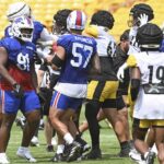 At one point during one of the first 11-on-11 periods after the traditional “seven shots” 2-point conversion simulation that opened team-drill practice, players from the Steelers offense and Bills defense gathered as if a skirmish was about to erupt — but, aside from some jawing, it blew over.