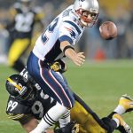 Brady completed 25 of 39 passes for 198 yards and two touchdowns, but the Steelers sacked him three times and possessed the ball for 39 minutes. LaMarr Woodley had two of the three sacks.