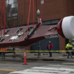 Preparing for the mounting of the ketchup bottle was a long process, according to Masich. After being outdoors at Heinz Field from 2001-2022, the fiberglass structure started to deteriorate. An extensive restoration process was required, and the museum had to be sure that the steel was strong enough to mount it.