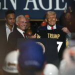 Former Steelers legend Rocky Bleier, who was joined on stage by current Steelers Mason Rudolph and Miles Killebrew, presented Trump with an honorary Steelers jersey with No. 47 on it — a nod to him being the 47th president in this term.