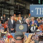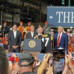 President Donald Trump called an audible early in his speech Friday night in West Mifflin, temporarily shifting focus away from a $14 billion agreement between U.S. Steel and Nippon Steel to recognize a trio of Pittsburgh Steelers.