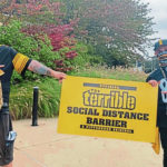 Steelers fans Mark Doman and Joe Gasperoni had no issue with the stadium rules, which required fans wear masks and maintain social distance while inside. They said they’d do whatever it takes to get in. They even brought their own “Terrible Social Distance Barrier” — a sign designed like a Terrible Towel to keep others at a safe distance.