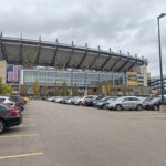 People were milling around the stadium and in and by the surrounding parking lots well before the 1 p.m. kickoff. Many wore Steelers and Eagles themed masks and were of course decked in black, gold and green.