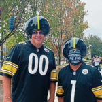 Jerry Tamilia and Barry McGlumphy of Washington County arrived in Steelers jerseys and large black helmets. Not traditional football helmets. Theirs were modeled after Dark Helmet from the comedy movie “Spaceballs” and The Great Gazoo from the animated television series “The Flintstones.” McGlumphy also wore a mask reading, “Spaceballs The Face Mask.”
