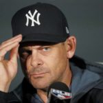 New York Yankees manager Aaron Boone speaks to the media at a news conference in London, Friday, June 28, 2019.