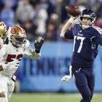 Titans safety Amani Hooker picked off his first pass this season on the Niners’ next play, returning it 21 yards to the San Francisco 18. D’Onta Foreman finished that short drive with a tying 3-yard TD run.