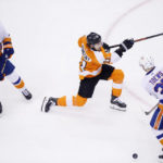 The Flyers scored three times in the first 15:09, chasing Varlamov. He had shut them out in Game 1 and built an Islanders’ playoff record shutout streak of 138:17 before Philadelphia broke through in the first period.