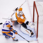 Beauvillier made it a one-goal game on a rush 11:11 into the third period. Pageau lifted a wrist shot over Hart’s glove to tie the game with 2:09 left, despite a Flyers’ claim that New York was offside entering the zone.