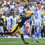 Wide receiver Diontae Johnson left after the second series with a shoulder injury. Outside linebacker T.J. Watt, the NFL’s Defensive Player of the Year, headed to the locker room with a knee injury in the second quarter after playing five series.