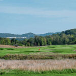 The inward nine starts with one of the course’s toughest holes. Like the first hole, it features a narrow, downhill fairway and a green that slopes from front to back.