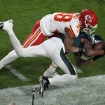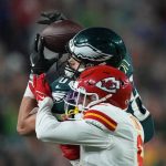 In the third quarter on Kansas City’s 38-35 victory Sunday, Philadelphia faced third-and-14 when Jalen Hurts found Dallas Goedert along the right sideline and the Eagles tight end caught the ball, bobbled it and caught it again while going out of bounds.